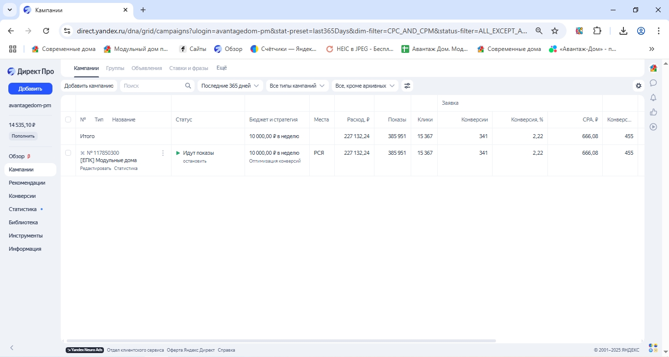 Средняя стоимость заявки